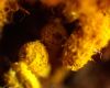 Man pēkšņi radās ideja - vai tur bija nu ļoti mitrs mikroklimats, egle ar melnalksni? Hipotētiski tādas dzeltenas var būt Diachea muscorum. Te bilde ir mazliet līdzīga: https://fr.wikipedia.org/wiki/Fichier:Craterium_muscorum,_Trawscoed,_North_Wales,_Aug_2016_-_Flickr_-_janetgraham84.jpg