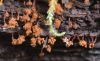Man pēkšņi radās ideja - vai tur bija nu ļoti mitrs mikroklimats, egle ar melnalksni? Hipotētiski tādas dzeltenas var būt Diachea muscorum. Te bilde ir mazliet līdzīga: https://fr.wikipedia.org/wiki/Fichier:Craterium_muscorum,_Trawscoed,_North_Wales,_Aug_2016_-_Flickr_-_janetgraham84.jpg