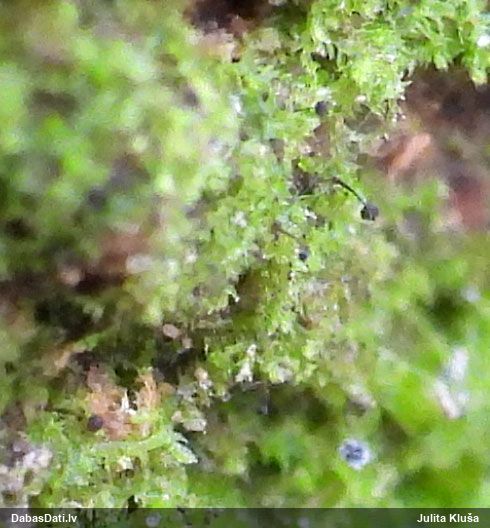 Man pēkšņi radās ideja - vai tur bija nu ļoti mitrs mikroklimats, egle ar melnalksni? Hipotētiski tādas dzeltenas var būt Diachea muscorum. Te bilde ir mazliet līdzīga: https://fr.wikipedia.org/wiki/Fichier:Craterium_muscorum,_Trawscoed,_North_Wales,_Aug_2016_-_Flickr_-_janetgraham84.jpg