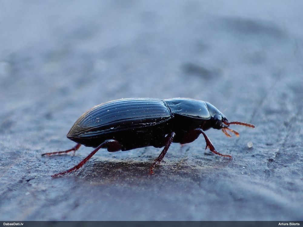 Jāredz tuvāk (kaut vai izkadrēts šis pats attēls) - varbūt tumšā eļļasvabole (Meloe proscarabaeus)