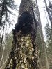 Satrūdējusi kritala mežā, nav dēļi. Iespējams, egle, jauktu koku mežs.