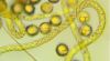 Man pēkšņi radās ideja - vai tur bija nu ļoti mitrs mikroklimats, egle ar melnalksni? Hipotētiski tādas dzeltenas var būt Diachea muscorum. Te bilde ir mazliet līdzīga: https://fr.wikipedia.org/wiki/Fichier:Craterium_muscorum,_Trawscoed,_North_Wales,_Aug_2016_-_Flickr_-_janetgraham84.jpg