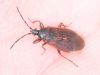 Jāredz tuvāk (kaut vai izkadrēts šis pats attēls) - varbūt tumšā eļļasvabole (Meloe proscarabaeus)