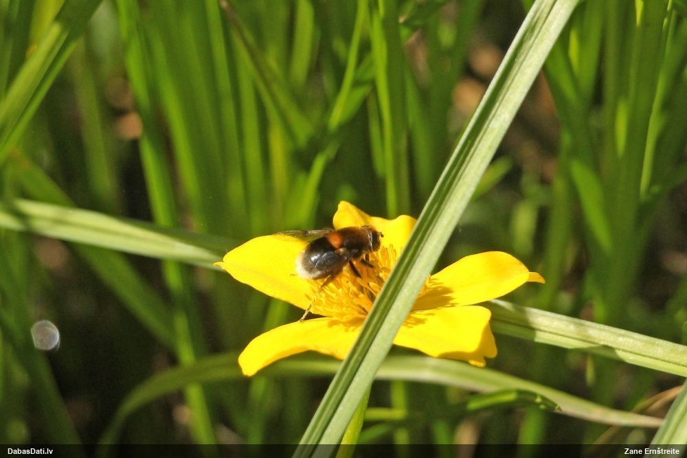 Jāredz tuvāk (kaut vai izkadrēts šis pats attēls) - varbūt tumšā eļļasvabole (Meloe proscarabaeus)