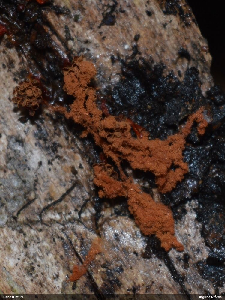 Šobrīd divas versijas - Physarum psittacinum un P.braunianum. Bez paraudziņa te skaidrīzā netiks, bet biotops interesants
