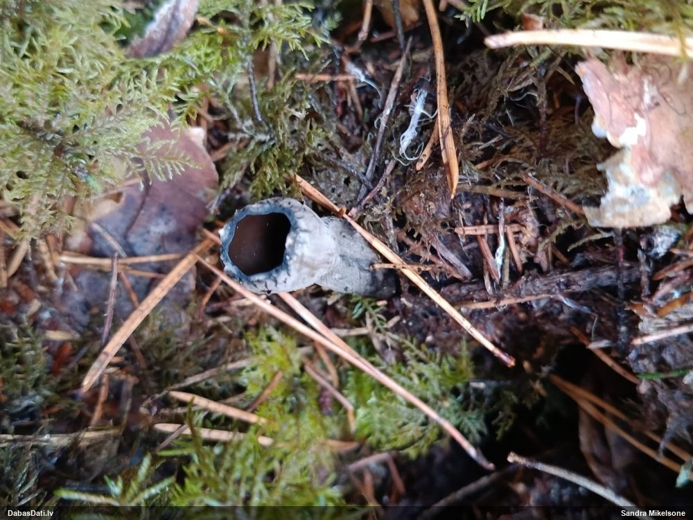 Vai tik nebūs medainā bumbulīte? Augļķermeņi vertikāli izstiepti, sporu mākonis ciešā klājienā.