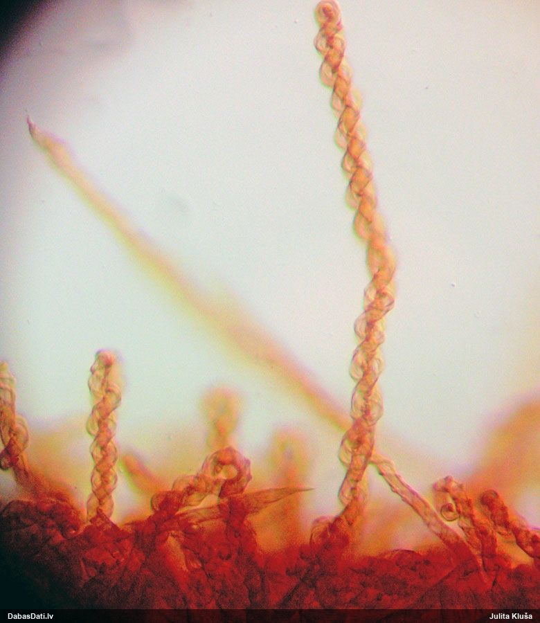 Sporas izskatās ļoti gaišas, varbūt nenobriedušas. Es laikam pēc kāda laiciņa mēģinātu vēlreiz mikroskopēt. Tajā pašā laikā sporu izmēri priekš T.contorta ir pamazi (ja tipiski ir 11-14 mkm, te ir knapi 11 mkm)