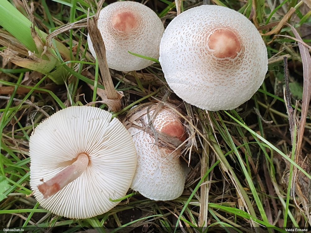 Pirmā bilde- šūnu daudzpilīte (sporu mākonis sarkans un staipās), otrā un trešā - kazeņu daudzpilīte (gara kāja, sporu mākonis brūns).
