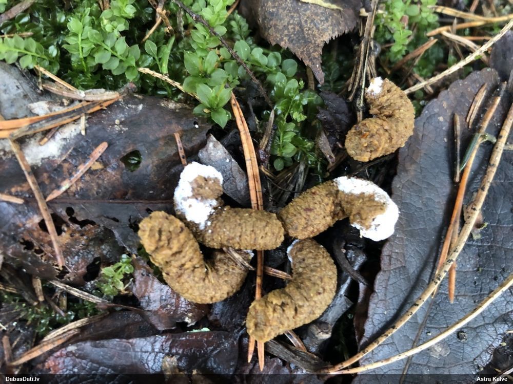 Teiktu, ka medainā bumbulīte. Redz vertikāli izstieptus augļķermeņus (ne pilienveida).