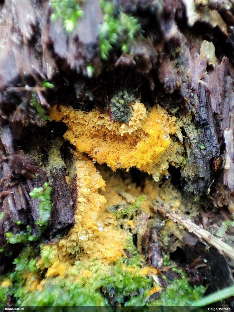 Julitas, šai paņemts paraugs, diezgan izsporojies. Un tai otrai līdzīgajai, kam ieziņots novērojums, arī. Pārliecinājos, ka tiešām egles kritalas. Bet tādu gļotsēņu diezgan daudz, vai uz katras egles kritalas, daudzās vietās stumbram, tagad dzeltenos sporu mākoņus labi redz.