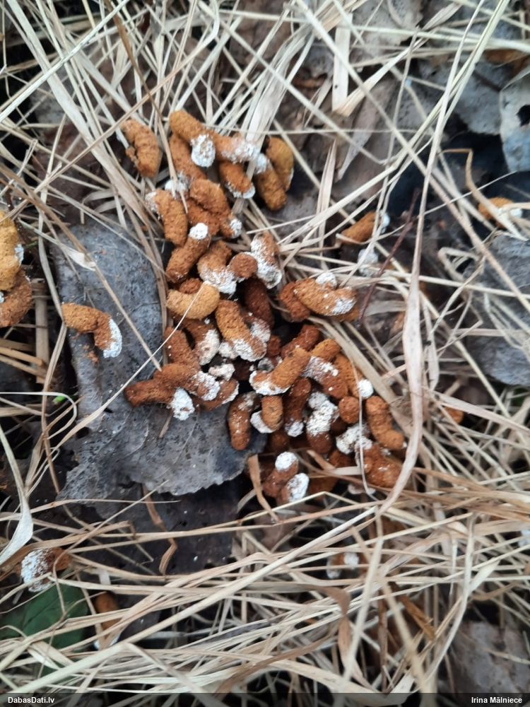 Teiktu, ka medainā bumbulīte. Redz vertikāli izstieptus augļķermeņus (ne pilienveida).