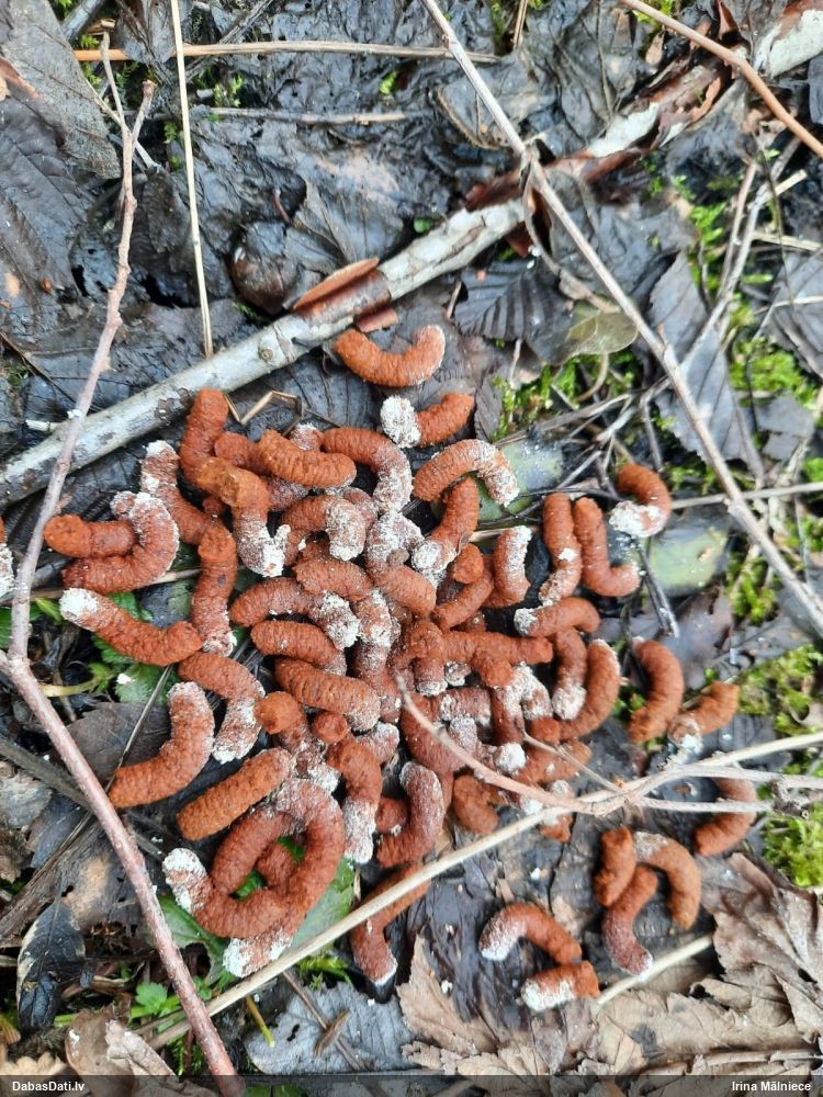 Teiktu, ka medainā bumbulīte. Redz vertikāli izstieptus augļķermeņus (ne pilienveida).