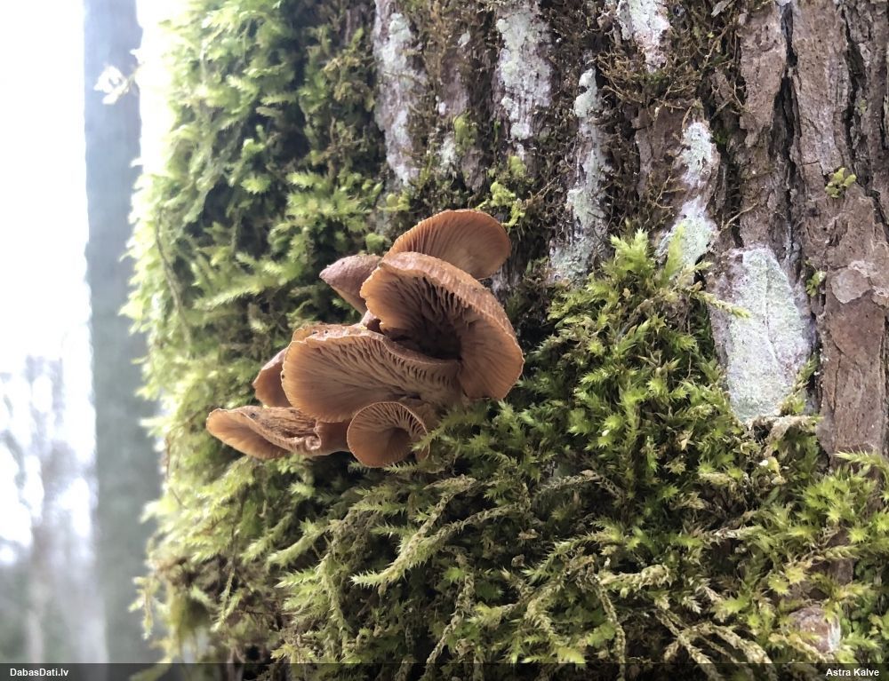 Ja uz beigta koka, tad ticamākā laikam ir B.affinis var. microspora, lai gan tā aug uz mizas. Bet varbūt tieši apakšā gļotsēnēm ir kādi mizas fragmentiņi?