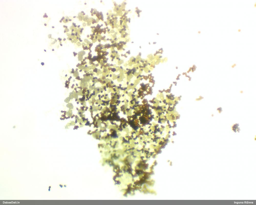 Sporas izskatās ļoti gaišas, varbūt nenobriedušas. Es laikam pēc kāda laiciņa mēģinātu vēlreiz mikroskopēt. Tajā pašā laikā sporu izmēri priekš T.contorta ir pamazi (ja tipiski ir 11-14 mkm, te ir knapi 11 mkm)