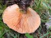 Ļoti neparasta kombinācija - īsa melna kājiņa un apaļīgi plakana galviņa. Un uz nobirām. Gļotsēņu atslēga kā cerīgāko piedāvā nabas jāņodzīti, bet tai neredzu "nabiņu" un nobirām arī nav raksturīga. Šķirstot noteicēju, visas līdzīgās atduras pret pēcsniedzītēm, kas gluži nevarētu būt :D Olītēm melnas kājiņas nav tipiskas (ja tiešām melna), tad paliek lampītes. Par garkājas lampīti (kā blakus) vismaz pagaidām šo nosaukt grūti ;) Atliek cerēt, ka nobriedīs tiktāl, lai mistēriju izdotos atrisināt :)
