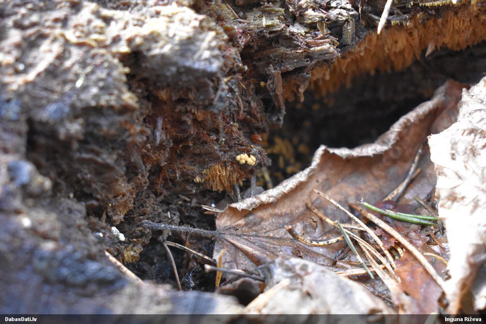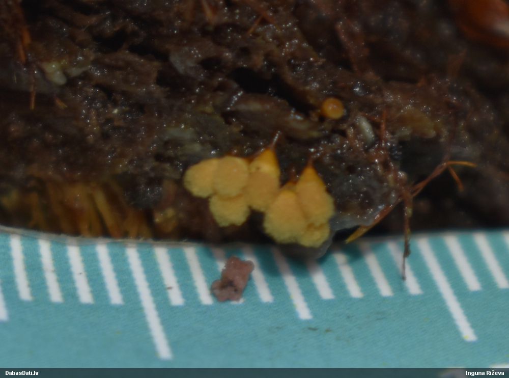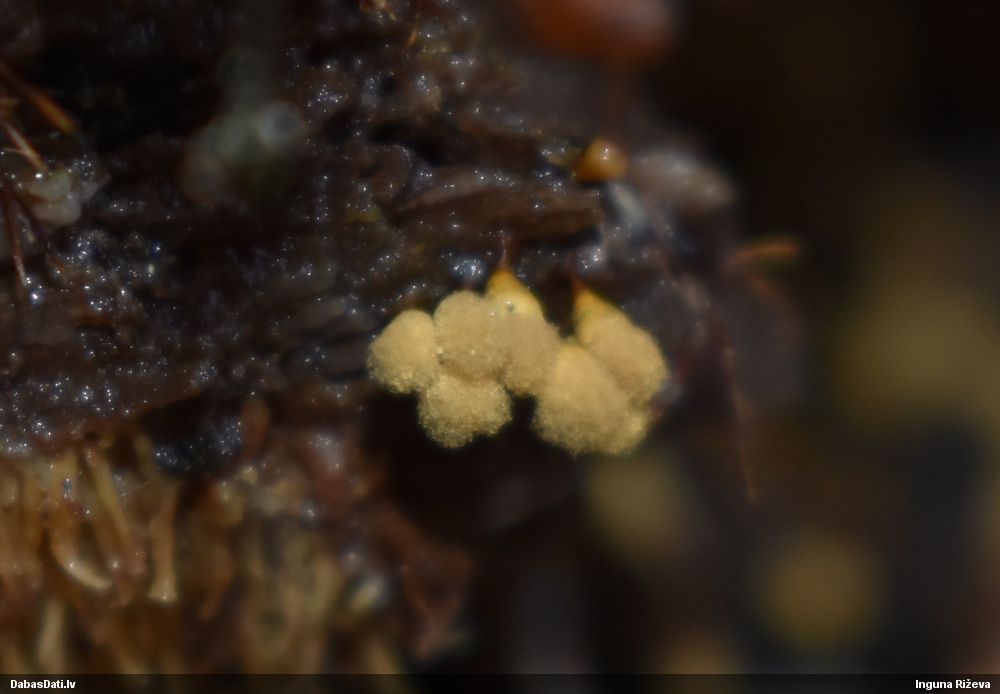 Šis man pašai sanāca pārsteigums. Ievācu paraugu ar domu "varbūt tur ir gļotsēne", dodot varbūtību apmēram pusprocentu, ka ir. Bet no mikroskopijas starp galīgi vecām sporām izdevās atrast ne tikai dažas labas, bet, galvenais, arī perfektus kapilīcija fragmentus, no kura suga, vēl kopā ar sporu pazīmēm, nosakāma nešaubīgi.