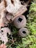 Šis interesants. Uz sausām priedes kritalām rozā mazi līdzīga izskata augļķermeņi maijā aug divām citādi atšķirīgām sugām (dažādās dzimtās) - melnajai plaispikai Amaurochaete atra un trauslajam gļotpūpēdim Reticularia jurana. Pēc sīkām mikropazīmēm (foto nav redzama pat ne sīka balta pakāje ap augļķermeni, un uz virsmas ar lielu piepūli var ja ne saskatīt, tad iztēloties tīklotu virsmas rakstu) izšķīros par biežāko no abām - melno plaispiku, kas tipiski aug samērā atklātās, skrajās vietās, t.sk. nesenos izcirtumos.
