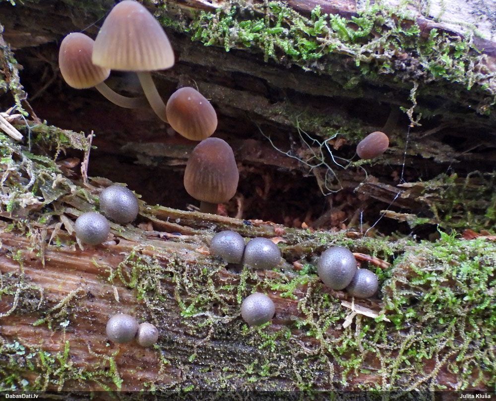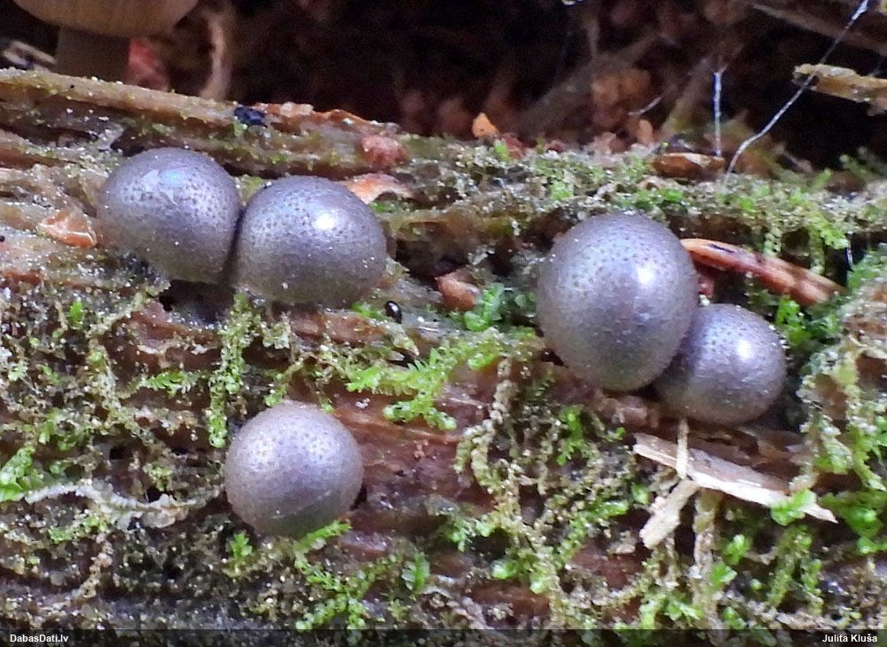 Paldies, Iveta! Julita, kā redzi – nevis dzīvs, bet tikai pusdzīvs ;) Par atrašanu – joprojām darbojos pēc principa bez piecām/sešām atrastām sugām no 250x250 m kvadrāta ārā neiet. Ja nav kritalu – rāpoju pa sūnām. Šis bija viens no kvadrātiem bez sugām, izvēlējos kritalu, tā bija patukša, blakus kritalai pamanīju šīs gļotsēnes. Beigās šajā vietā esmu iesprūdis, būs vēl daži interesanti atradumi. Tik jāatrod laiks mikroskopēšanai, sugu noteikšanai un salikšanai DD. Laika kā reiz šobrīd ļoti maz un brīvajos brīžos drīzāk gribas atkal aizskriet uz savu sūnu pleķi :) Par nosaukumu – domāju, ka rīkojamies līdzīgi kā ar Tavu Diachea (bij. Craterium) muscorum – tā kā šai sugai mums nav iegājies krāterītes nosaukums, saucam par vizulīti. Kaut, piekrītu, drīzāk izskatās pēc krāterītes.