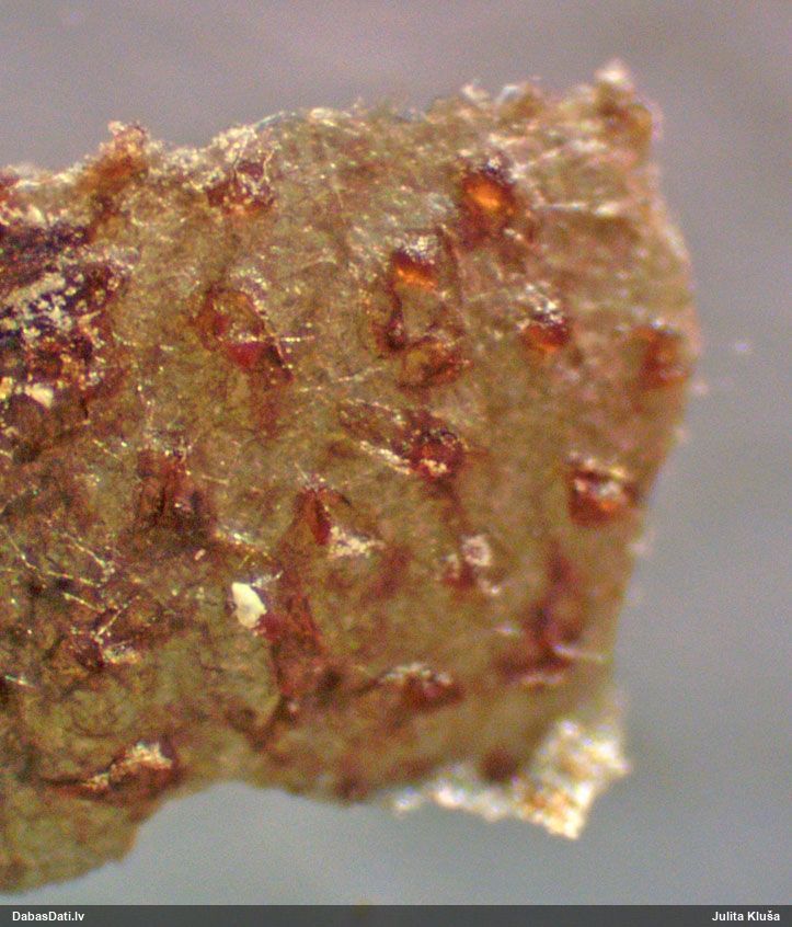 Marita, reizēm mikroskopijā jau bija radusies sajūta, ka "nobirušas kārpas", jo dīvaini punktiņi, bet sākumā tas tā nenopietni šķita, vēlāk sapratu, ka varētu būt nopietni. Bet ka to izmanto kā pazīmi noteikšanai - to gan redzēju pirmoreiz! Licea minima arī tā esot, tāpēc šīs sugas varētu būt radnieciskas. To gan vēl neķēros pārbaudīt, man šodien kriksīšu jau pietiek. ;)