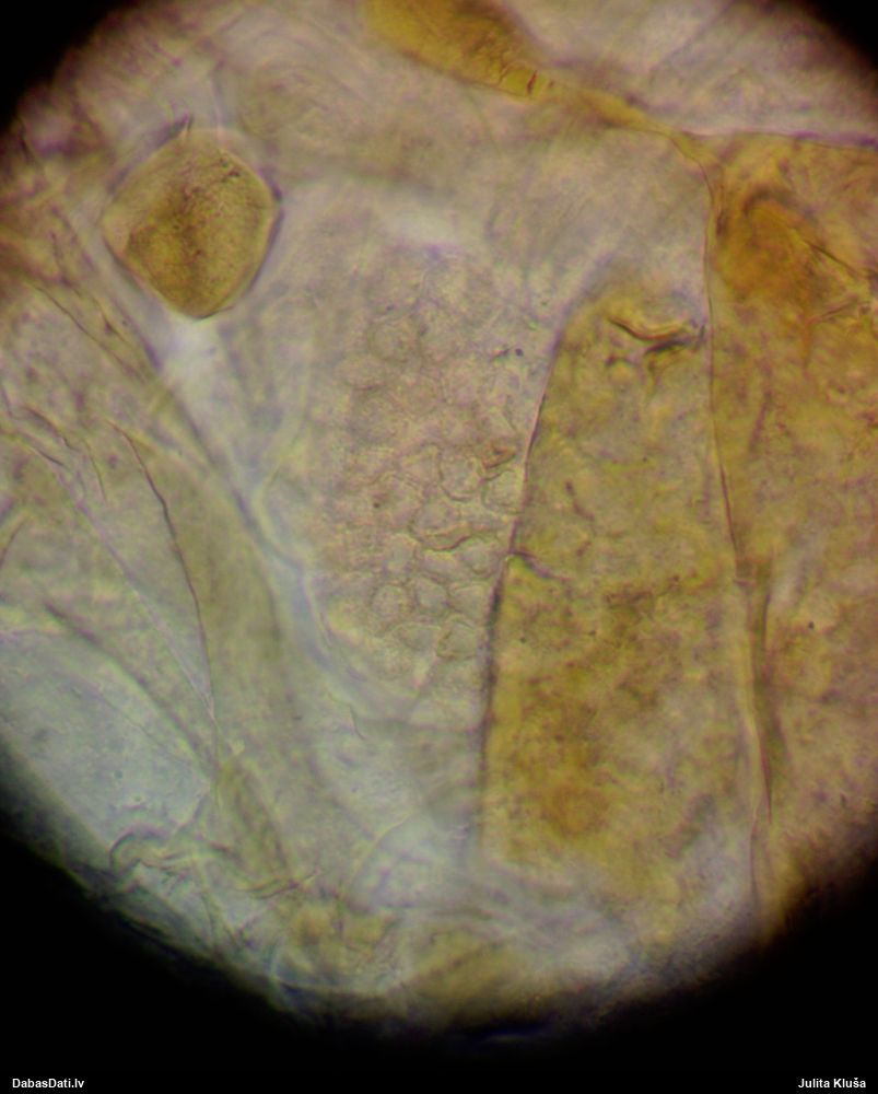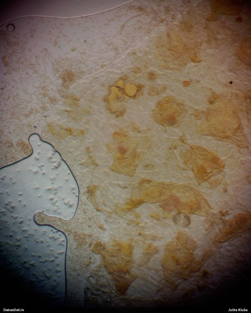 Tīkliņš šķiet daļējs, vispār bija grūti noķert to fokusā, bet varbūt tā vienkārši ir mikroskopēšanas vaina.