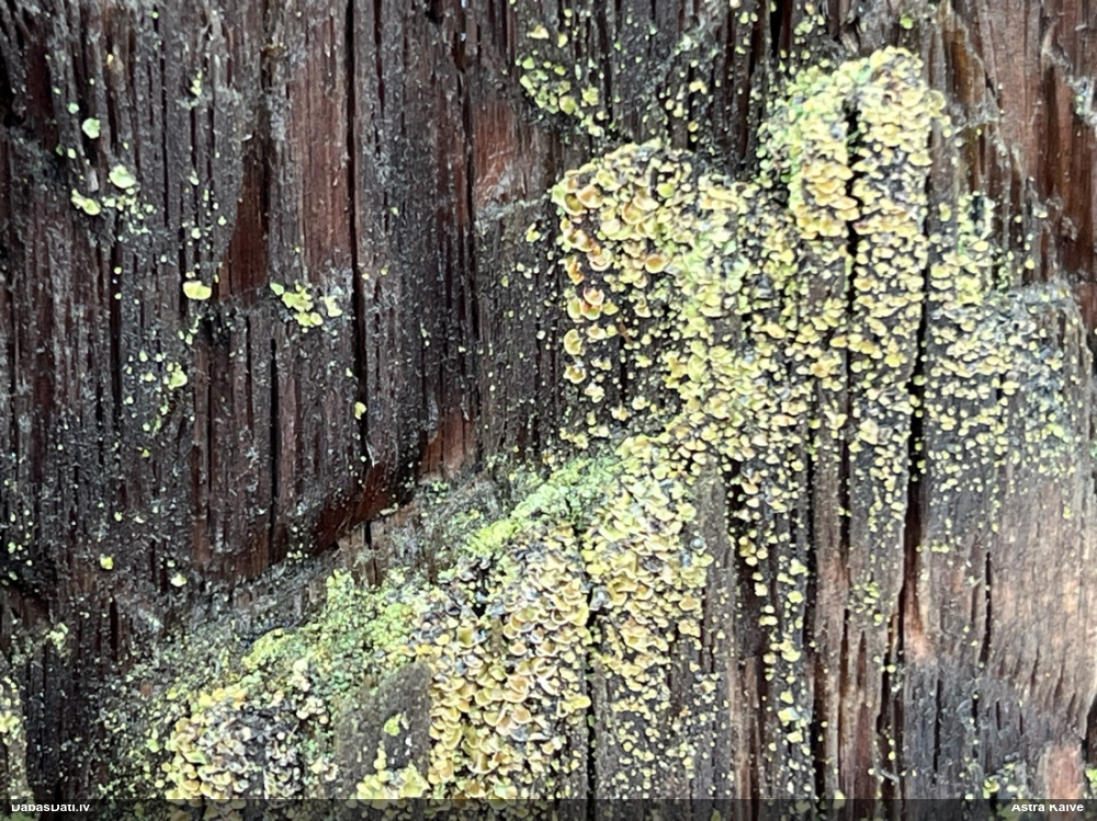 2. foto pakāje izskatās viegli rozīga, pats augļķermenis arī tāds nav tīri dzeltens, mazliet brūngani pleķi. Plus augšanas laiks septembrī uz plikas koksnes (ne sūnām) - viss liecina, ka drīzāk vajadzētu būt F.licentii