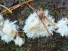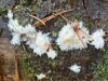 Šis bij pārsteigums. Ievācu bez cerībām, jo sakaltis. Hipotēze par gļotsēni, jo gļotaina apmale. Tā kā balts, sporu nebūs, neko zaudēt nevar, ielēju kastītē ūdeni (pat ne salvetes, vnk "dzīvu ūdeni") un aizmirsu. Krāmējoties pa kastītēm, atveru un - pārsteigums. Plānotā gļotsēne izaugusi 100x lielāka :D un izrādās sēne, kas mitrumā beidzot uzbriedusi. Kā tādu mikroskopēt, gan nezinu, jo tur tak receklis.. Tā ka vai pēdējie 2 mikro-foto par tēmu - nezinu.