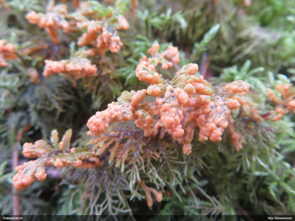 Paldies, Raivo! Ar acu gaišumu man arvien sliktāk, bet mikroskops palīdz. Jā, gribēju teikt, ka paraugam, ja vien nav kāda jutīga atradne, kurai drīkst ievākt tikai mazu gabaliņu, vērts ievākt lielāku gabalu, jo gļotsēnēm patīk kompānija. Un mikroskopa mazajos palielinājumos ar sānu papildus apgaismojumu ir vērts rūpīgi "izstaigāt" visu paraugu. Arī ķērpjus un interesantas sīksēnītes tā var atrast, ko dabā nepamanītu. Ar kriksītēm ir dažādi - pirmās es tā arī tikai citu sugu paraugos pamanīju, bet vēlāk redzēju arī dabā kriskīšu plantācijas - ja to ir daudz, tad var pamanīt jau dabā. Uz sūnām gan ir ekstrēms gadījums, dabā droši nepamanītu, arī eksemplāra noņemšana no sūnas nebija pārāk veiksmīga, tāpēc par noteikšanu mazliet šaubos (sporām mazliet cits tonis). Bet pagaidām citas hipotēzes nav (un konkrētā eksemplāra arī vairs ne).