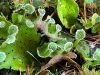 Šis bij pārsteigums. Ievācu bez cerībām, jo sakaltis. Hipotēze par gļotsēni, jo gļotaina apmale. Tā kā balts, sporu nebūs, neko zaudēt nevar, ielēju kastītē ūdeni (pat ne salvetes, vnk "dzīvu ūdeni") un aizmirsu. Krāmējoties pa kastītēm, atveru un - pārsteigums. Plānotā gļotsēne izaugusi 100x lielāka :D un izrādās sēne, kas mitrumā beidzot uzbriedusi. Kā tādu mikroskopēt, gan nezinu, jo tur tak receklis.. Tā ka vai pēdējie 2 mikro-foto par tēmu - nezinu.
