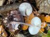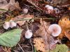 Ļoti neparasta kombinācija - īsa melna kājiņa un apaļīgi plakana galviņa. Un uz nobirām. Gļotsēņu atslēga kā cerīgāko piedāvā nabas jāņodzīti, bet tai neredzu "nabiņu" un nobirām arī nav raksturīga. Šķirstot noteicēju, visas līdzīgās atduras pret pēcsniedzītēm, kas gluži nevarētu būt :D Olītēm melnas kājiņas nav tipiskas (ja tiešām melna), tad paliek lampītes. Par garkājas lampīti (kā blakus) vismaz pagaidām šo nosaukt grūti ;) Atliek cerēt, ka nobriedīs tiktāl, lai mistēriju izdotos atrisināt :)