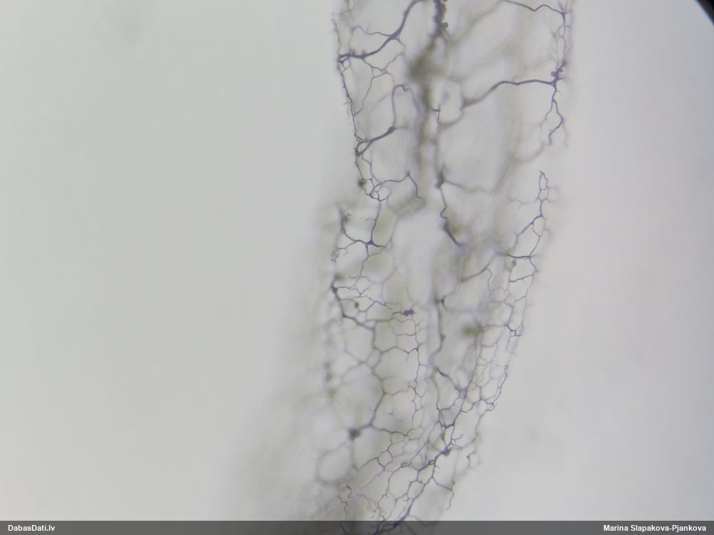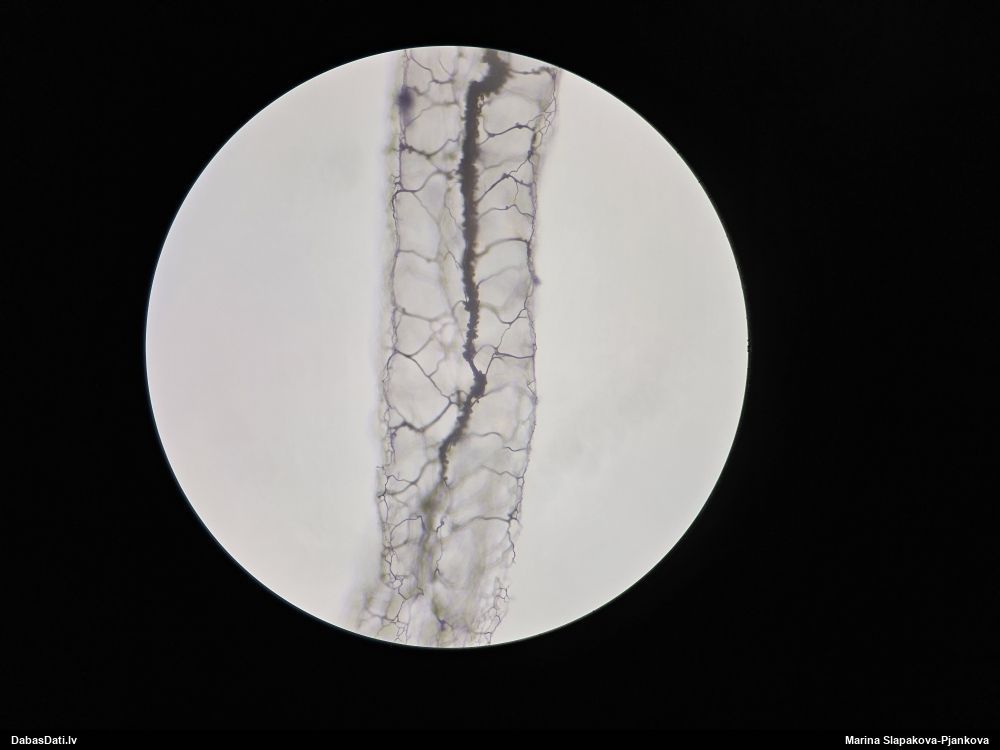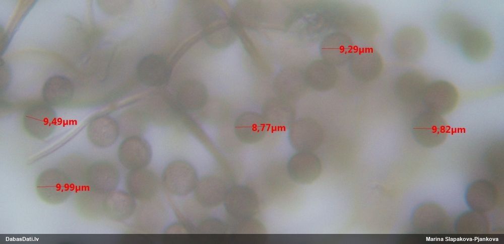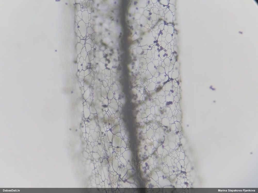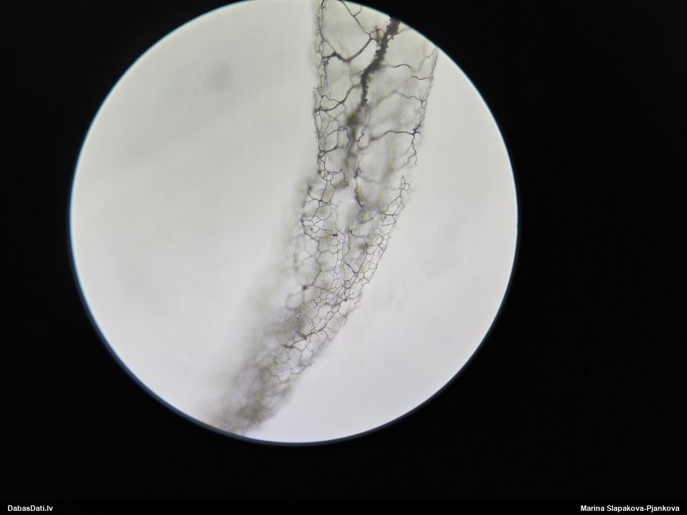 Šis man pašai sanāca pārsteigums. Ievācu paraugu ar domu "varbūt tur ir gļotsēne", dodot varbūtību apmēram pusprocentu, ka ir. Bet no mikroskopijas starp galīgi vecām sporām izdevās atrast ne tikai dažas labas, bet, galvenais, arī perfektus kapilīcija fragmentus, no kura suga, vēl kopā ar sporu pazīmēm, nosakāma nešaubīgi.