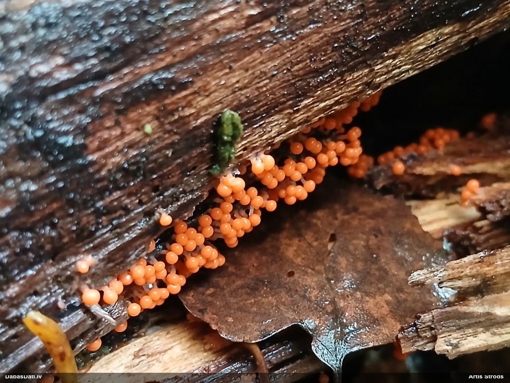 Paldies, Iveta! Julita, kā redzi – nevis dzīvs, bet tikai pusdzīvs ;) Par atrašanu – joprojām darbojos pēc principa bez piecām/sešām atrastām sugām no 250x250 m kvadrāta ārā neiet. Ja nav kritalu – rāpoju pa sūnām. Šis bija viens no kvadrātiem bez sugām, izvēlējos kritalu, tā bija patukša, blakus kritalai pamanīju šīs gļotsēnes. Beigās šajā vietā esmu iesprūdis, būs vēl daži interesanti atradumi. Tik jāatrod laiks mikroskopēšanai, sugu noteikšanai un salikšanai DD. Laika kā reiz šobrīd ļoti maz un brīvajos brīžos drīzāk gribas atkal aizskriet uz savu sūnu pleķi :) Par nosaukumu – domāju, ka rīkojamies līdzīgi kā ar Tavu Diachea (bij. Craterium) muscorum – tā kā šai sugai mums nav iegājies krāterītes nosaukums, saucam par vizulīti. Kaut, piekrītu, drīzāk izskatās pēc krāterītes.