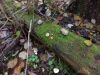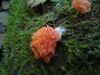 Man pēkšņi radās ideja - vai tur bija nu ļoti mitrs mikroklimats, egle ar melnalksni? Hipotētiski tādas dzeltenas var būt Diachea muscorum. Te bilde ir mazliet līdzīga: https://fr.wikipedia.org/wiki/Fichier:Craterium_muscorum,_Trawscoed,_North_Wales,_Aug_2016_-_Flickr_-_janetgraham84.jpg