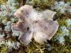 Šis bij pārsteigums. Ievācu bez cerībām, jo sakaltis. Hipotēze par gļotsēni, jo gļotaina apmale. Tā kā balts, sporu nebūs, neko zaudēt nevar, ielēju kastītē ūdeni (pat ne salvetes, vnk "dzīvu ūdeni") un aizmirsu. Krāmējoties pa kastītēm, atveru un - pārsteigums. Plānotā gļotsēne izaugusi 100x lielāka :D un izrādās sēne, kas mitrumā beidzot uzbriedusi. Kā tādu mikroskopēt, gan nezinu, jo tur tak receklis.. Tā ka vai pēdējie 2 mikro-foto par tēmu - nezinu.