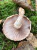 Ļoti neparasta kombinācija - īsa melna kājiņa un apaļīgi plakana galviņa. Un uz nobirām. Gļotsēņu atslēga kā cerīgāko piedāvā nabas jāņodzīti, bet tai neredzu "nabiņu" un nobirām arī nav raksturīga. Šķirstot noteicēju, visas līdzīgās atduras pret pēcsniedzītēm, kas gluži nevarētu būt :D Olītēm melnas kājiņas nav tipiskas (ja tiešām melna), tad paliek lampītes. Par garkājas lampīti (kā blakus) vismaz pagaidām šo nosaukt grūti ;) Atliek cerēt, ka nobriedīs tiktāl, lai mistēriju izdotos atrisināt :)