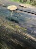 Ļoti neparasta kombinācija - īsa melna kājiņa un apaļīgi plakana galviņa. Un uz nobirām. Gļotsēņu atslēga kā cerīgāko piedāvā nabas jāņodzīti, bet tai neredzu "nabiņu" un nobirām arī nav raksturīga. Šķirstot noteicēju, visas līdzīgās atduras pret pēcsniedzītēm, kas gluži nevarētu būt :D Olītēm melnas kājiņas nav tipiskas (ja tiešām melna), tad paliek lampītes. Par garkājas lampīti (kā blakus) vismaz pagaidām šo nosaukt grūti ;) Atliek cerēt, ka nobriedīs tiktāl, lai mistēriju izdotos atrisināt :)