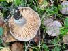 Ļoti neparasta kombinācija - īsa melna kājiņa un apaļīgi plakana galviņa. Un uz nobirām. Gļotsēņu atslēga kā cerīgāko piedāvā nabas jāņodzīti, bet tai neredzu "nabiņu" un nobirām arī nav raksturīga. Šķirstot noteicēju, visas līdzīgās atduras pret pēcsniedzītēm, kas gluži nevarētu būt :D Olītēm melnas kājiņas nav tipiskas (ja tiešām melna), tad paliek lampītes. Par garkājas lampīti (kā blakus) vismaz pagaidām šo nosaukt grūti ;) Atliek cerēt, ka nobriedīs tiktāl, lai mistēriju izdotos atrisināt :)