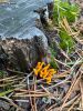 Uz trupējuša koka, pa daļai smiltīs kāpās. Piekopoju bildi. Sākumā pagāju garām, likās mandarīna miza.