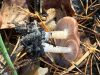 Ļoti neparasta kombinācija - īsa melna kājiņa un apaļīgi plakana galviņa. Un uz nobirām. Gļotsēņu atslēga kā cerīgāko piedāvā nabas jāņodzīti, bet tai neredzu "nabiņu" un nobirām arī nav raksturīga. Šķirstot noteicēju, visas līdzīgās atduras pret pēcsniedzītēm, kas gluži nevarētu būt :D Olītēm melnas kājiņas nav tipiskas (ja tiešām melna), tad paliek lampītes. Par garkājas lampīti (kā blakus) vismaz pagaidām šo nosaukt grūti ;) Atliek cerēt, ka nobriedīs tiktāl, lai mistēriju izdotos atrisināt :)