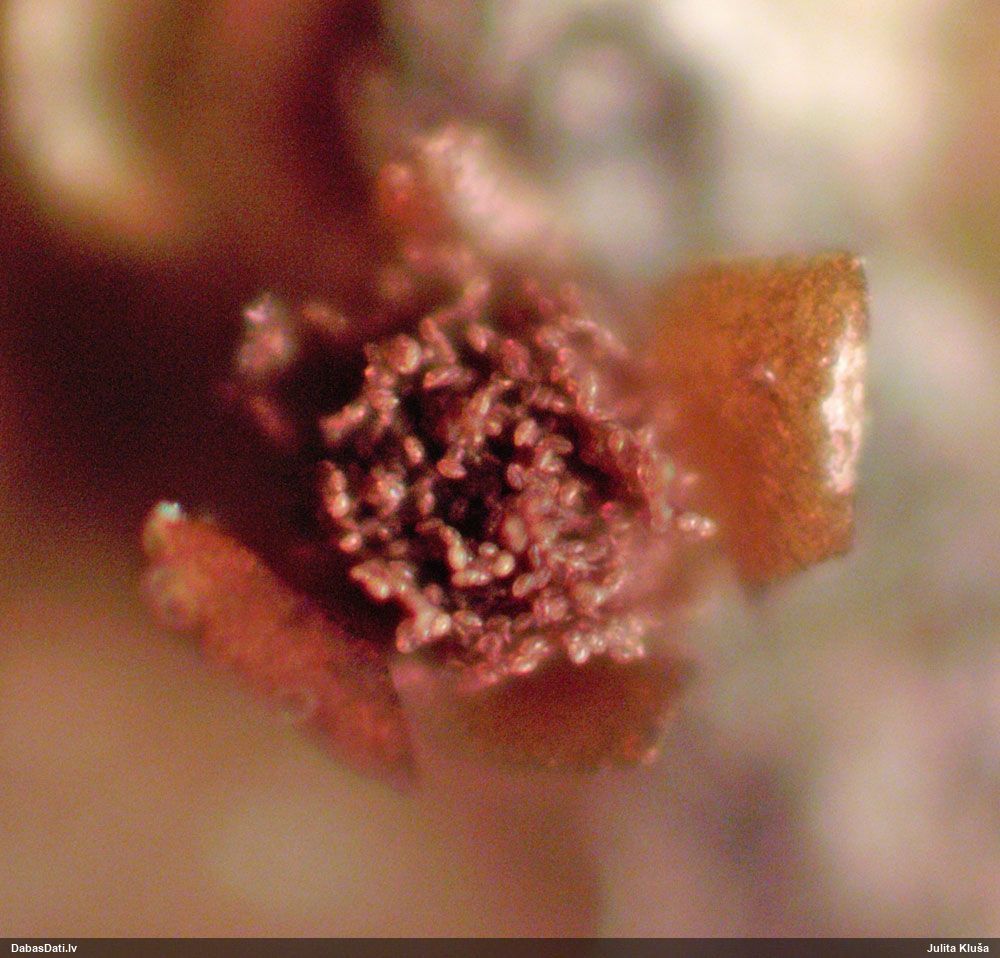 Šis man pašai sanāca pārsteigums. Ievācu paraugu ar domu "varbūt tur ir gļotsēne", dodot varbūtību apmēram pusprocentu, ka ir. Bet no mikroskopijas starp galīgi vecām sporām izdevās atrast ne tikai dažas labas, bet, galvenais, arī perfektus kapilīcija fragmentus, no kura suga, vēl kopā ar sporu pazīmēm, nosakāma nešaubīgi.