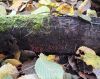 Kaut ko līdzīgu ir gadījies redzēt, kad it kā veidojas gļotsēne, bet ātri sakalst, neattīstās. Gļotsēnei augšanas vieta ap caurumu būtu atbilstoša...