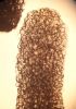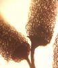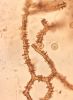 Šis bij pārsteigums. Ievācu bez cerībām, jo sakaltis. Hipotēze par gļotsēni, jo gļotaina apmale. Tā kā balts, sporu nebūs, neko zaudēt nevar, ielēju kastītē ūdeni (pat ne salvetes, vnk "dzīvu ūdeni") un aizmirsu. Krāmējoties pa kastītēm, atveru un - pārsteigums. Plānotā gļotsēne izaugusi 100x lielāka :D un izrādās sēne, kas mitrumā beidzot uzbriedusi. Kā tādu mikroskopēt, gan nezinu, jo tur tak receklis.. Tā ka vai pēdējie 2 mikro-foto par tēmu - nezinu.