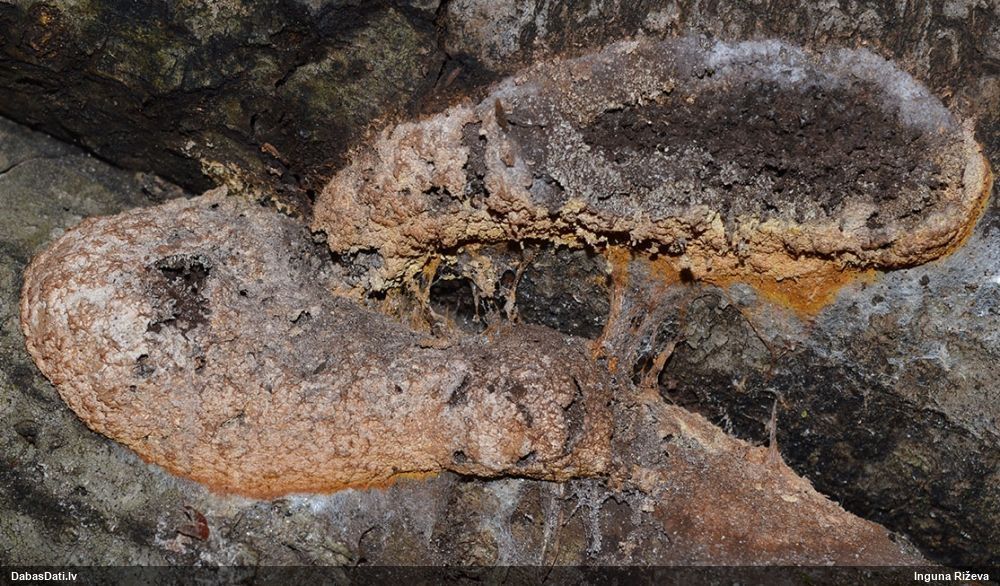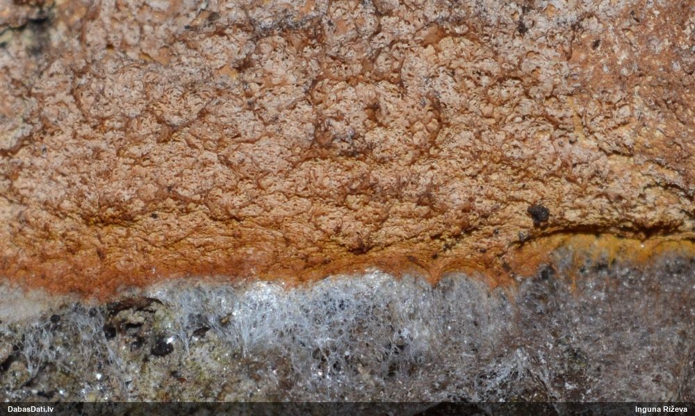 Interesanti, ka no ārpuses paraugā viss ir koši dzeltens, bet mikroskopijā nekā dzeltena nav - viss oranži rūsgans. Iespējams, šī suga tiešām reaģē ar ūdeni, mainot krāsu. Vai tā ir rufa vai tomēr flava - to vēl līdz galam neesmu izpētījusi. Pēc "veciem" kritērijiem te būtu rufa.
