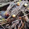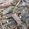 Šīs varētu būt jaunas pumpurītes (Physarum sp.) vai lampītes (Lamproderma sp.)