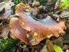 Rūtiņa ir 1mm, par kājiņu es arī nevaru saprast - drīzāk nav nekā ir :) Nobriedušas ir netīri pelēkbaltas ar ļoti trauslu perīdiju. Pagaidām daivās neplaisā, grūti pateikt, kā plaisā, ja nepieskaras augļķermeņiem. "Kraukšķīgs perīdijs", tas ir kā? Pie mazākā pieskāriena tas saplīst gabaliņos, bet vai kraukšķ? :) Sarkans nav, iekšpuse perīdijam balta, bet pskatīšos vēl.