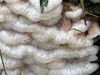 Rūtiņa ir 1mm, par kājiņu es arī nevaru saprast - drīzāk nav nekā ir :) Nobriedušas ir netīri pelēkbaltas ar ļoti trauslu perīdiju. Pagaidām daivās neplaisā, grūti pateikt, kā plaisā, ja nepieskaras augļķermeņiem. "Kraukšķīgs perīdijs", tas ir kā? Pie mazākā pieskāriena tas saplīst gabaliņos, bet vai kraukšķ? :) Sarkans nav, iekšpuse perīdijam balta, bet pskatīšos vēl.