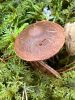 Ļoti neparasta kombinācija - īsa melna kājiņa un apaļīgi plakana galviņa. Un uz nobirām. Gļotsēņu atslēga kā cerīgāko piedāvā nabas jāņodzīti, bet tai neredzu "nabiņu" un nobirām arī nav raksturīga. Šķirstot noteicēju, visas līdzīgās atduras pret pēcsniedzītēm, kas gluži nevarētu būt :D Olītēm melnas kājiņas nav tipiskas (ja tiešām melna), tad paliek lampītes. Par garkājas lampīti (kā blakus) vismaz pagaidām šo nosaukt grūti ;) Atliek cerēt, ka nobriedīs tiktāl, lai mistēriju izdotos atrisināt :)