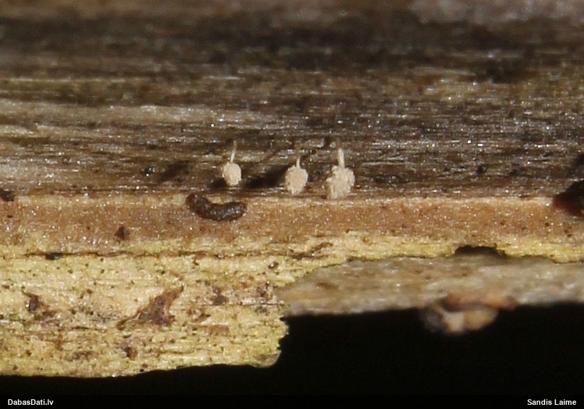 Šis man pašai sanāca pārsteigums. Ievācu paraugu ar domu "varbūt tur ir gļotsēne", dodot varbūtību apmēram pusprocentu, ka ir. Bet no mikroskopijas starp galīgi vecām sporām izdevās atrast ne tikai dažas labas, bet, galvenais, arī perfektus kapilīcija fragmentus, no kura suga, vēl kopā ar sporu pazīmēm, nosakāma nešaubīgi.