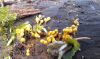 Man pēkšņi radās ideja - vai tur bija nu ļoti mitrs mikroklimats, egle ar melnalksni? Hipotētiski tādas dzeltenas var būt Diachea muscorum. Te bilde ir mazliet līdzīga: https://fr.wikipedia.org/wiki/Fichier:Craterium_muscorum,_Trawscoed,_North_Wales,_Aug_2016_-_Flickr_-_janetgraham84.jpg