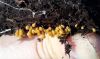 Vai tik nebūs medainā bumbulīte? Augļķermeņi vertikāli izstiepti, sporu mākonis ciešā klājienā.