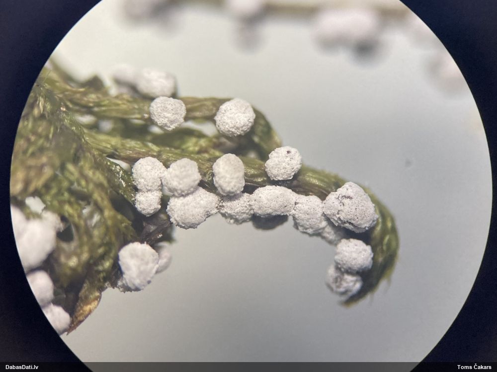 Šis man pašai sanāca pārsteigums. Ievācu paraugu ar domu "varbūt tur ir gļotsēne", dodot varbūtību apmēram pusprocentu, ka ir. Bet no mikroskopijas starp galīgi vecām sporām izdevās atrast ne tikai dažas labas, bet, galvenais, arī perfektus kapilīcija fragmentus, no kura suga, vēl kopā ar sporu pazīmēm, nosakāma nešaubīgi.